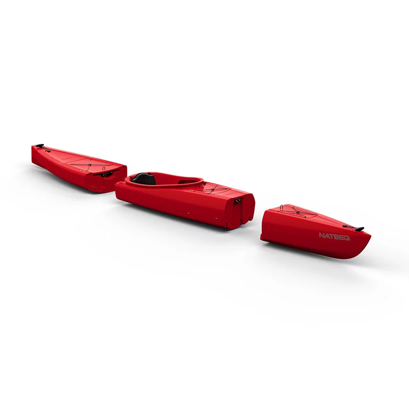NATSEQ – Ein einzigartiges, teilbares Kajak, das sich in Sekunden vom Einer in einen Zweier verwandelt. Es besitzt ein zum Patent angemeldetes Verschlusssystem, das ein schnelles Auf- und Abbauen sowie platzsparenden Transport & Lagerung ermöglicht.